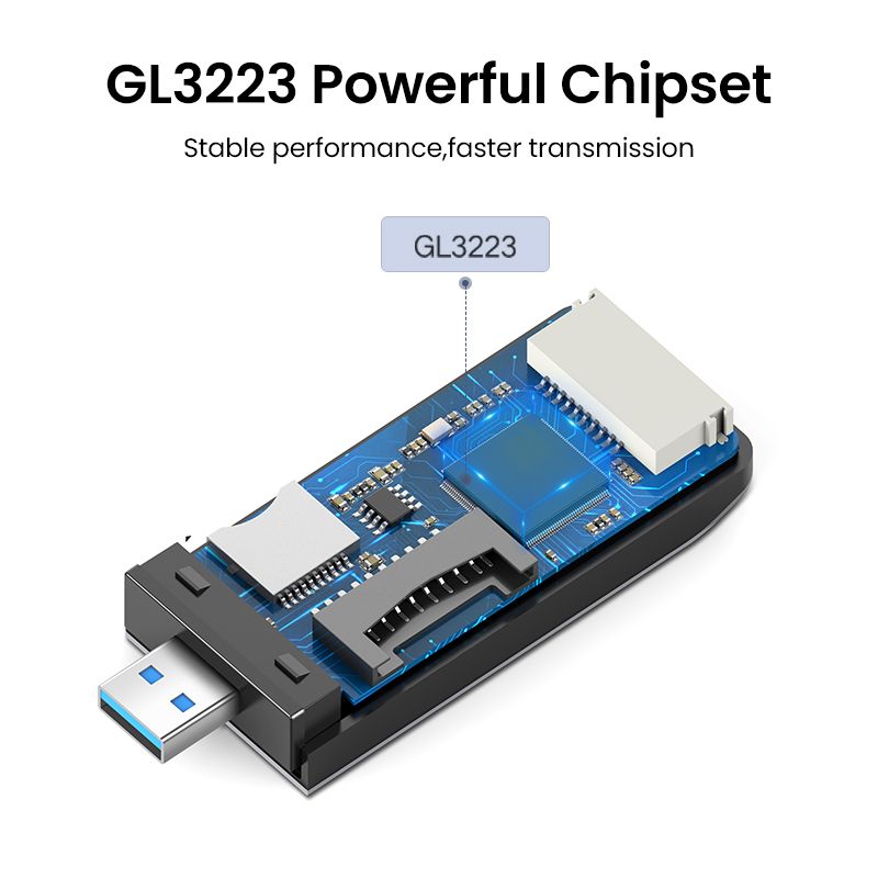 5Gbps Superspeed Transfer】UGREEN Multi Card Reader features USB 3.0 high-speed performance with up to 5.0 Gb/s data transfer speed, 10 times faster than USB 2.0. When used with high-speed memory cards such as Class 10 SDHC, this SD reader can transfer 1GB files in 10 seconds. Powerful chip GL3223 offers fast and reliable access to your memory cards and greatly ensures stable data transfer speeds. More effective and keep you away from waiting.