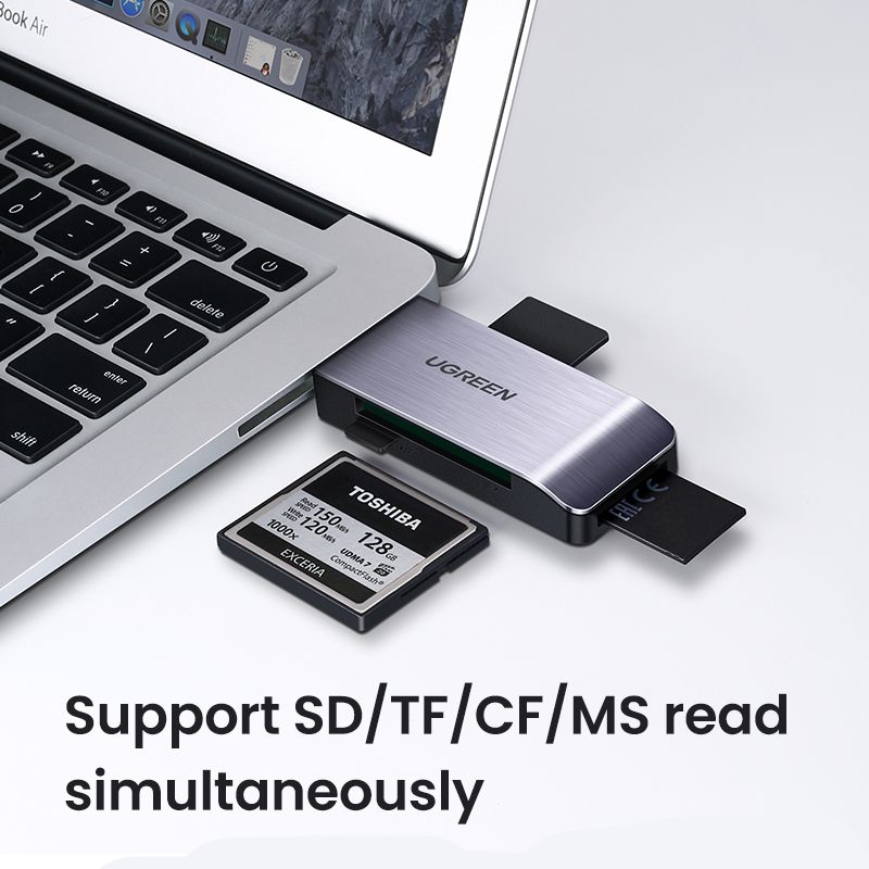 【Durable Materials & Excellent Warranty】The Compact Flash Card Reader is made of high quality aluminum alloy that is good for heat dissipation and prevents overheat. Anti-slip ABS bottom secures the SD memory card adaptor firmly and keeps it safe in place. UGREEN USB Card Reader comes with 6-month quality warranty and lifetime customer support