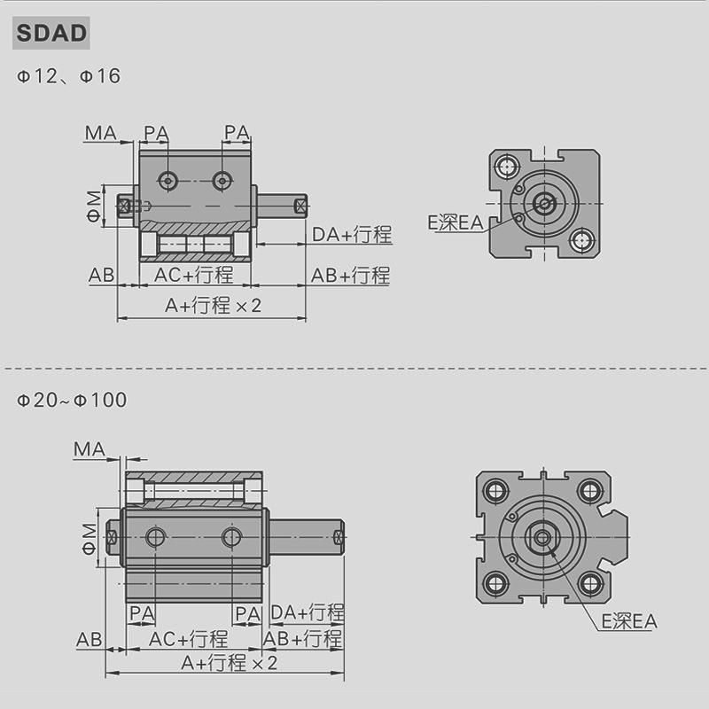 Buy SDAD50-10 SDAD50-5 SDAD40-10 Can Be Used as Center Shaft through Hole in Nigeria