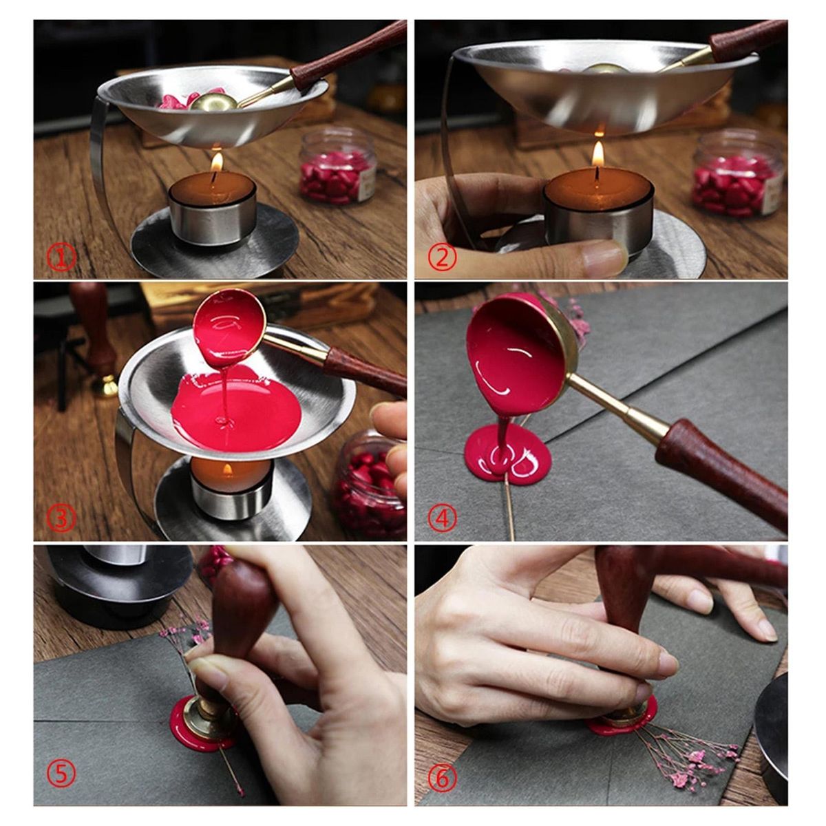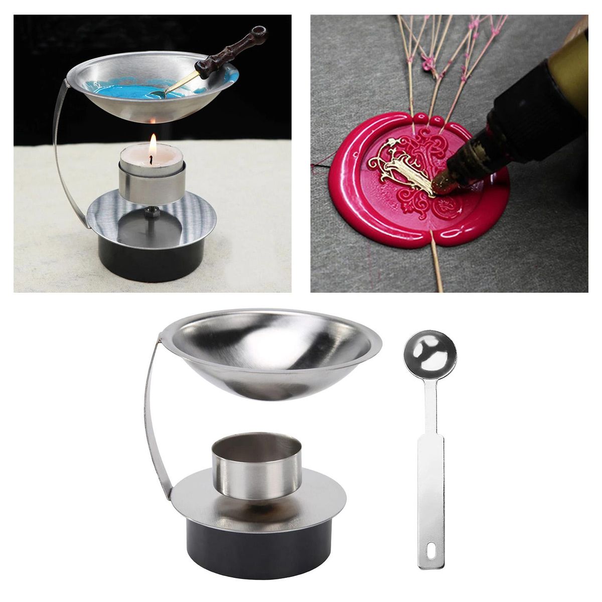 Package Includes: 1 x Seal Warmer, 1 x Seal Spoon,Material: Food Grade Stainless Steel, Color: SilverGreat for mass seals making: seal kit can be melted mang at the same time, so it can save your time, very convenience.Large capacity: one time can melt 40-60 dosage, adjustable: candlestick height adjustable, and can be disassembled, easy to melt .Easy To Clean: , just heat the spoon to melt the leftover and simply wipe it off with paper or tissue. Please be careful not to your hands!It can also be used as an lamp, which can be used in the home, bedroom, living room, office and yoga room.Sealing Stamp for folding invitations & envelopes, retro letters, wine packing or other gift boxes; an ideal item for craft gifts, invitations, souvenirs, and so on.