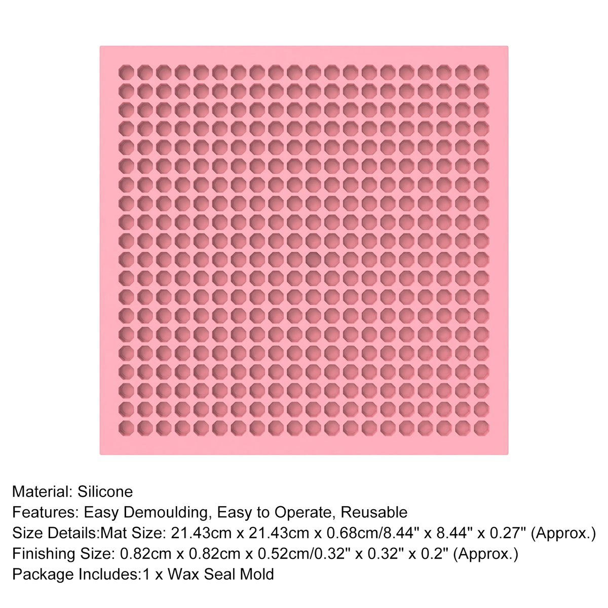 The length of the wax seal mold is 21.43 cm, the width is 21.43 cm, and the height is 0.68 cm.