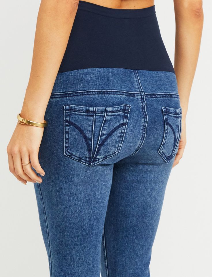 mamas. Our Indigo Blue Secret Fit Belly Super Stretch Skinny Maternity Jeans features the Secret Fit Belly waistband that fits over or under your bump.