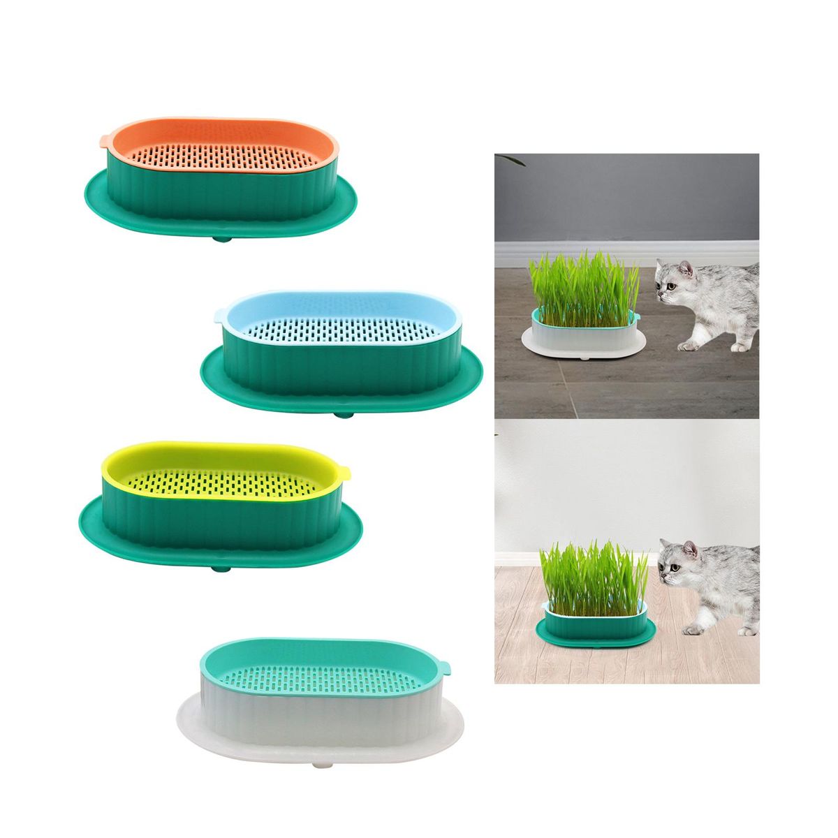 【Breathable Holes】The pet cats grass growing sprouting container is with multiple holes, breathable and practical.