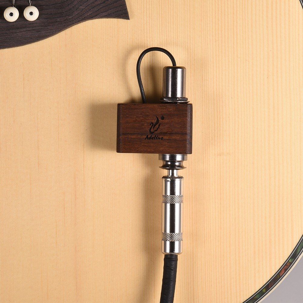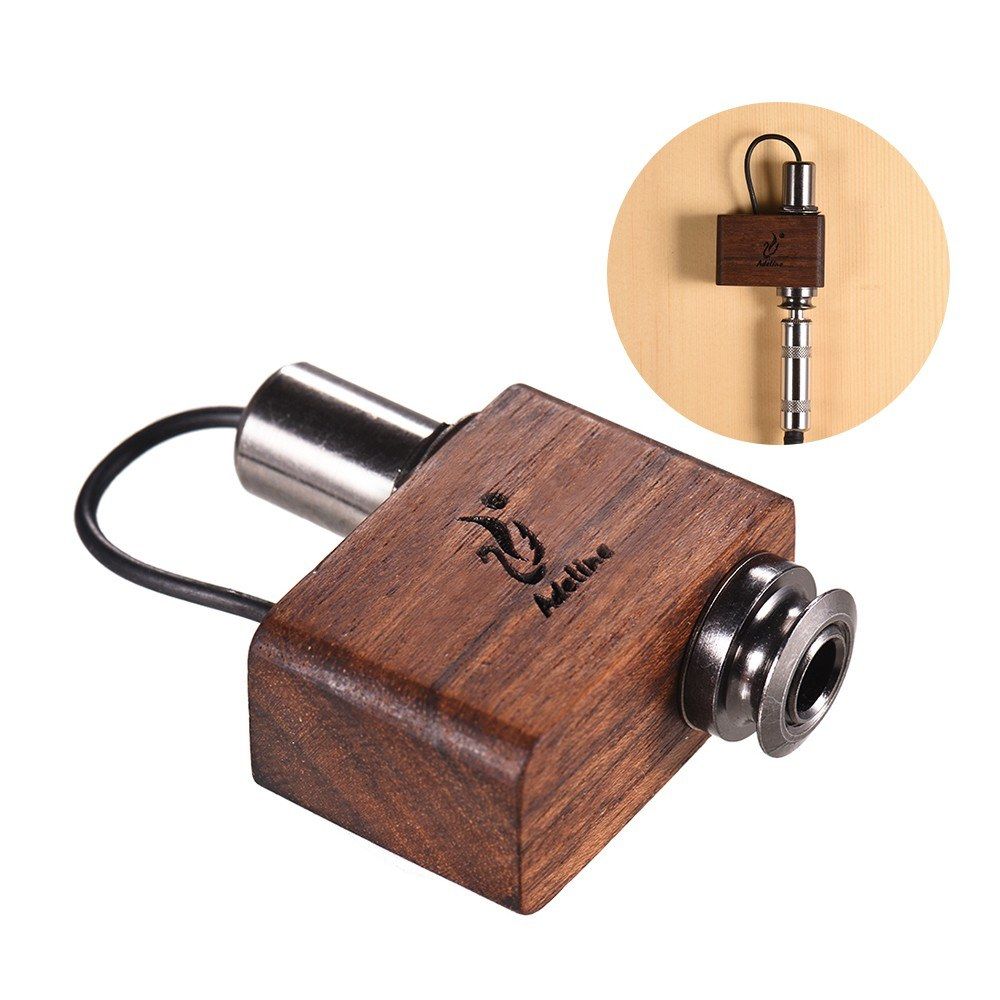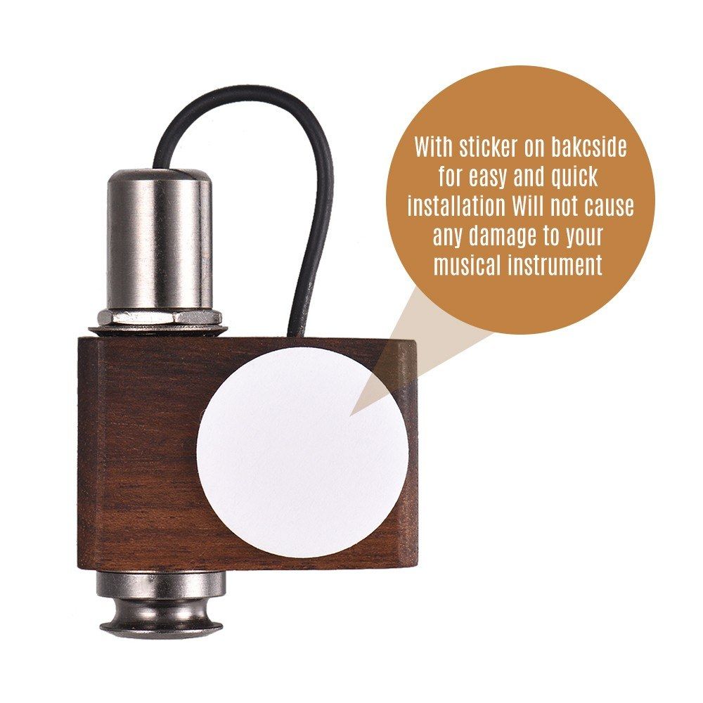 Wooden pickup for acoustic guitar, ukulele, violin, cajon, African drum and other vocal musical instruments.