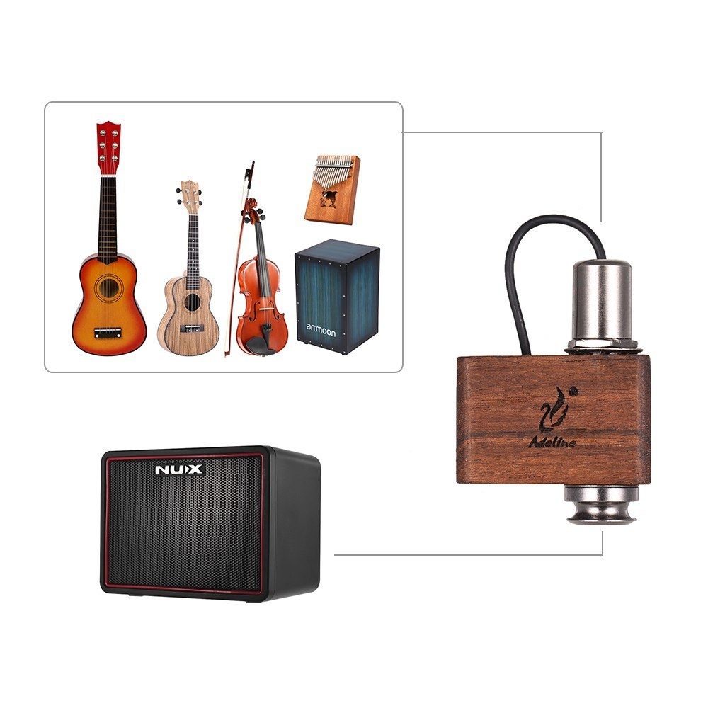 Compact size, easy to carry; you can stick it to different position of musical instrument to get the sound you like.