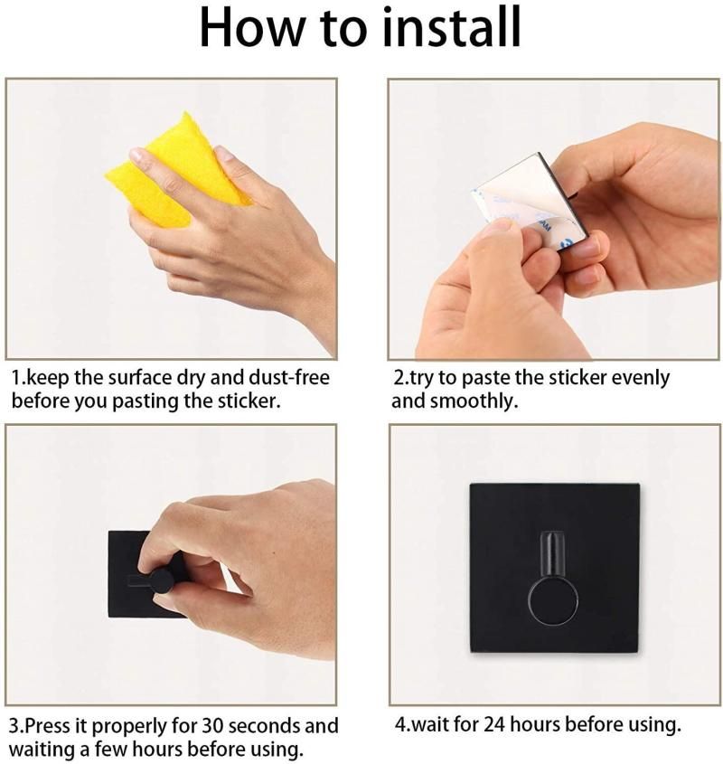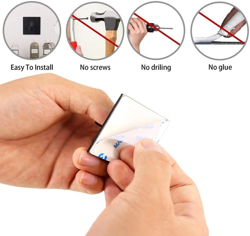 Adhesive hook is made of stainless steel and equipped self-adhesive tape with the best adhesion. Adhesive wall hooks don't require drilling and tools. Just peel off the protective layer on the backing and stick it on the desired position. Our adhesive hooks are your handy organizing help. From the home to office to garage, keep your life tidied and ordered.