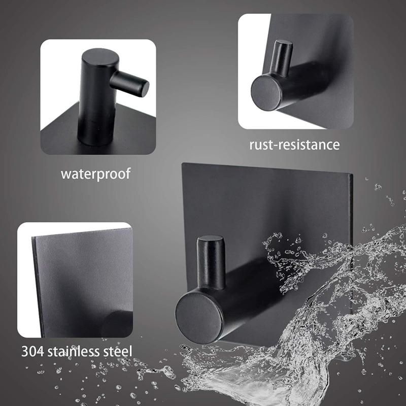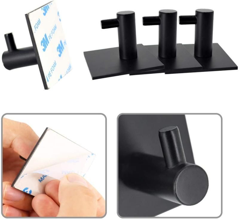 Self Adhesive Robe Hooks Stainless Steel (Black)
