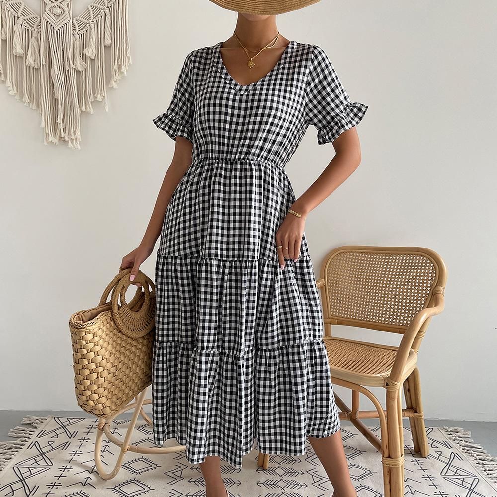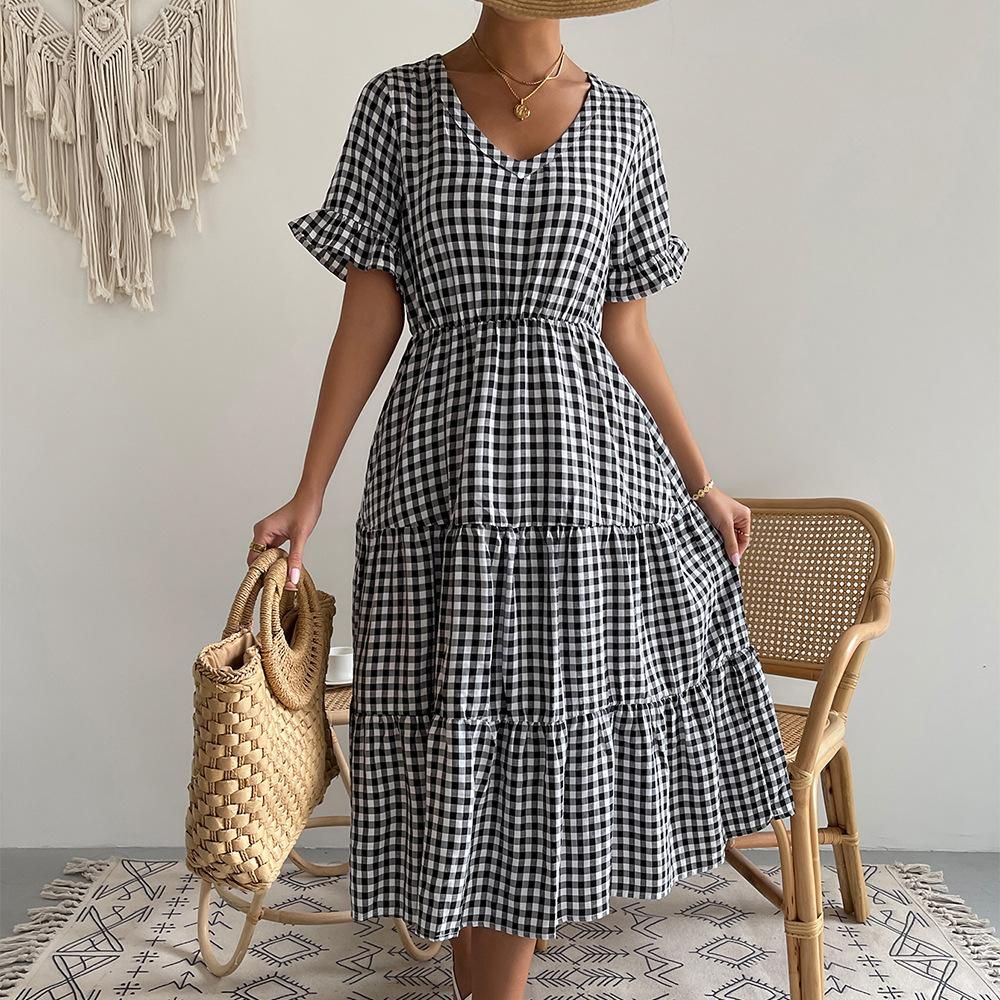 Buy Self-developed and designed plaid style dress Spring/Summer 2022 sexy large skirt children in Nigeria