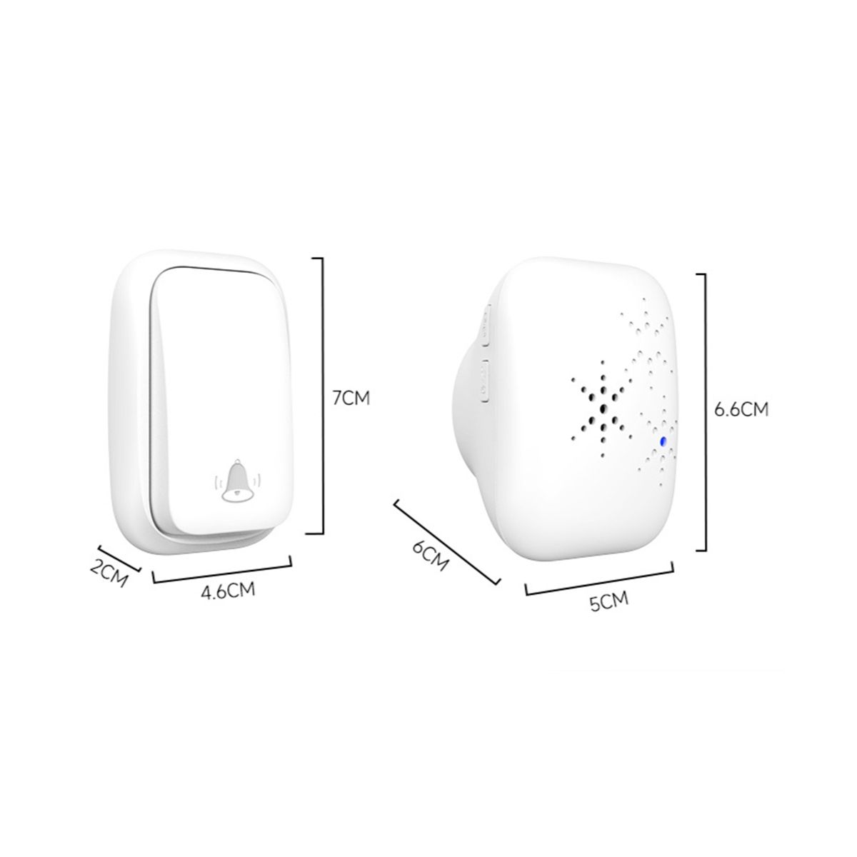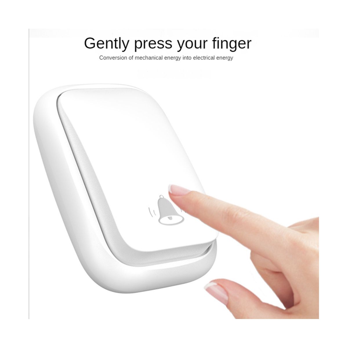 No battery needed, press your finger to generate electricity, the transmitter has a built-in kinetic generation module, and press the doorbell to convert the mechanical energy into electrical energy to generate a wireless signal