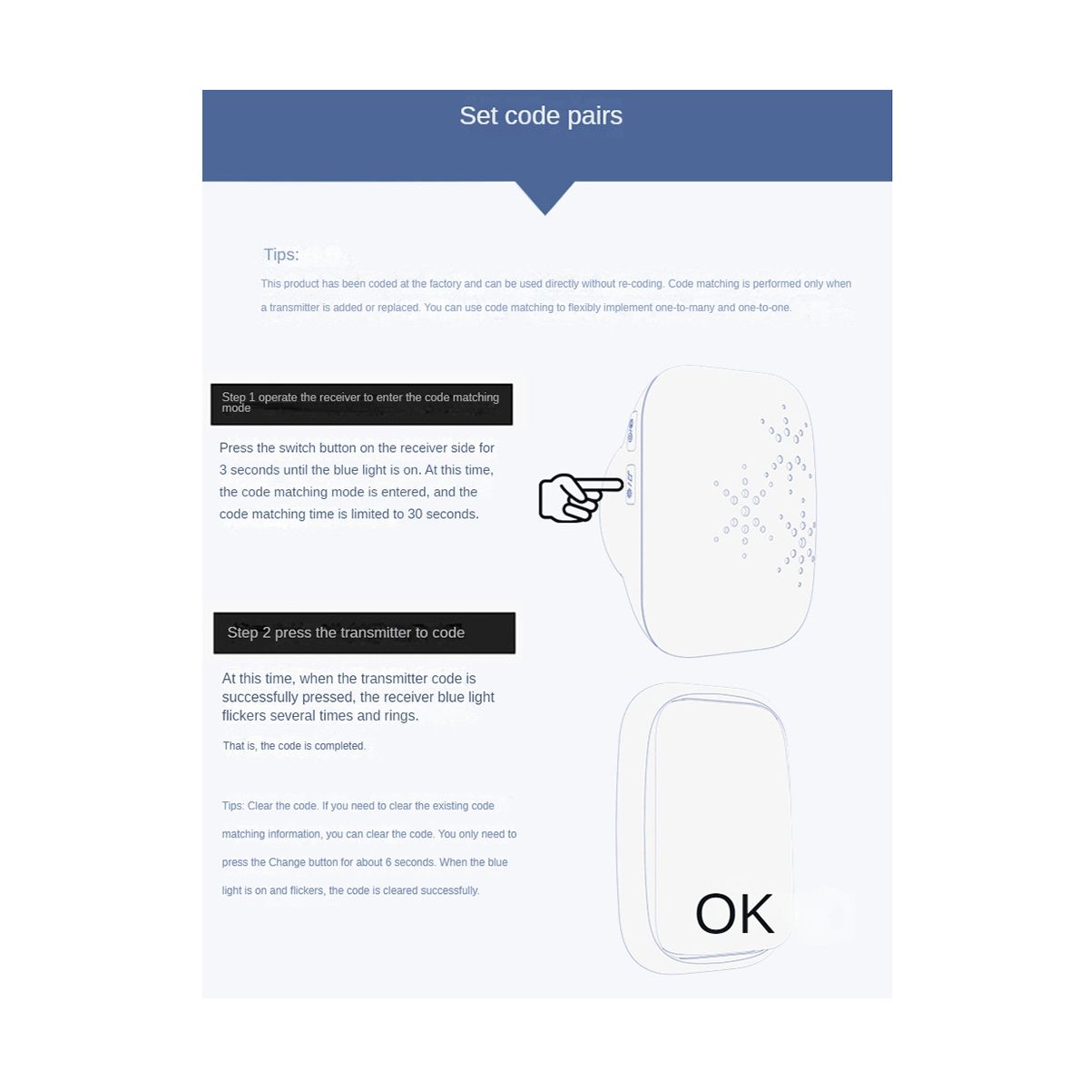 One thing with two purposes is not only a doorbell, but also can be used as a pager, a pager for the elderly, a pager for pregnant women, and a baby pager to protect your family when you are sleeping soundly at night