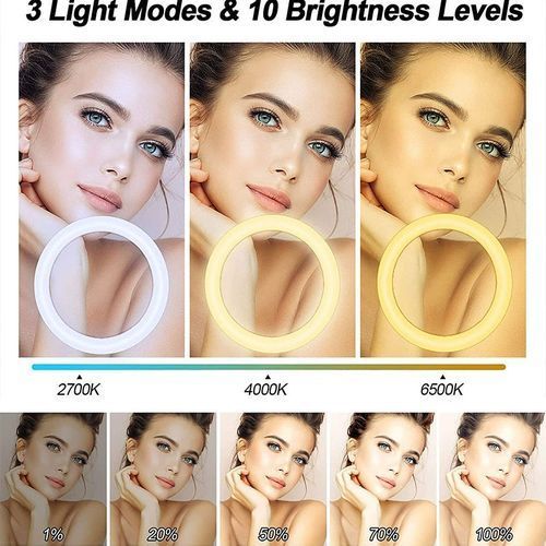 Multi-Functions: 2-in-1 design combines the phone holder and selfie ring light together, it is a professional tool for creating live videos/recording with smartphone or computer. Perfect extra light for make-up, live streaming, lay flat, selfie photos, filming, video recording, online teaching, dark scenery vlogging etc.