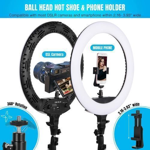 - Flexible & Rotatable Phone Holder - ring light comes with 3 hot shoe ports that allow you mount 3 phones, and 2 USB charging ports for your smart phone charging while livestream. It's compatible with most smart phones with or without a case.