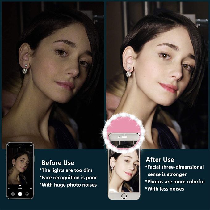 Bad Lighting can be solved. With the lighting produced from this portable selfie light ring, the resulting pictures are of good lighting, leading to good quality pictures as well. The universal portable selfie ring is rechargeable and it comes with a USB Cable to be used to charge it. It is compatible with all smartphones; iPhones, Androids, iPads, other tablets, and computers etc. The way it is designed, there is no problem of it scratching phones, tablets or the gadgets its used for, as anti slip mat is used leading no no damage to the phone lenses too. With Natural light, Uniform Illumination brightness, and ultra wide lighting range, pictures of natural looking skin tones can be achieved. It can also be used as torchlight, emergency light, making up light, and led night light.The selfie light is designed in such a way that it provides supplemental or side lighting for photography whenever there is low light condition. The ring shape macro flash light is designed especially for close ups photography. It has