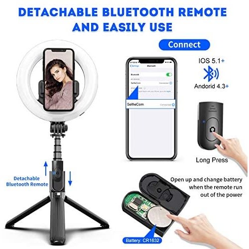 Buy Selfie Ring Light With Tripod Stand & Phone Holder Rechargeable Selfie Stick 6.3" in Nigeria