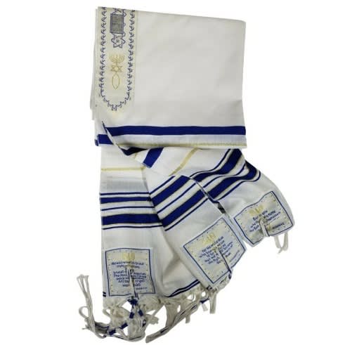 Tallit Kosher Prayer Shawl - Acrylic - Blue And Gold