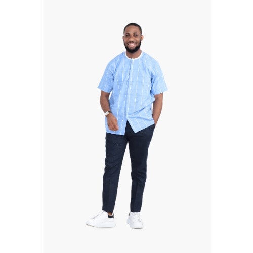 OmaAfri Designs & rsquo; exquisite collection of senator material shirts or/and trousers embody the African sartorial excellence, fusing traditional craftsmanship with modern flair. Each shirt is transformed into a masterpiece of wearable art. Attending a formal or social gathering, these shirts exude a refined presence that elevates your style and command attention.