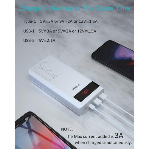 LED Digital Display: This portable power bank has the implicit LCD indicator, it presents available battery percentage exactly. Ensures easy check and accurate battery capacity.