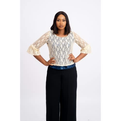 Buy Sequence Lace Ladies Blouse-cream/blue-lbs-9197 in Nigeria