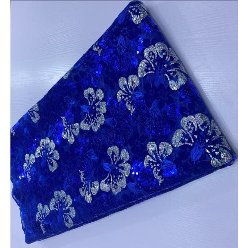 Buy Sequence Shiny African Lace Fabric - Royal Blue in Nigeria