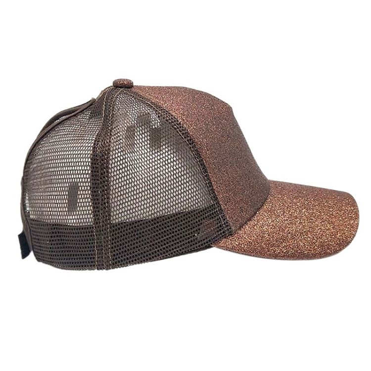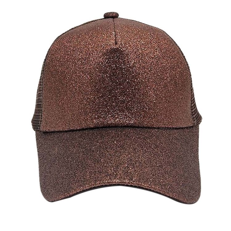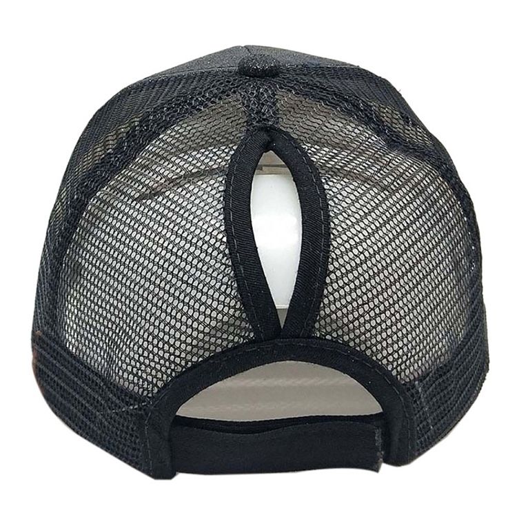 Sequined Cotton Baseball Cap Back Opening Mesh Ponytail Cap