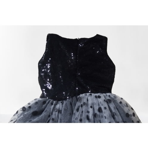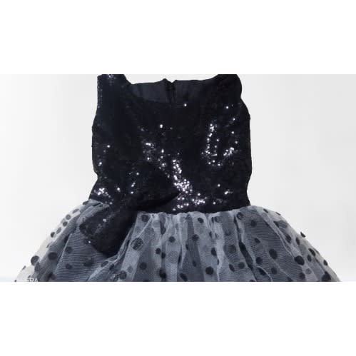 A gorgeous black dress for a special ocaasion . The black satin shoulder starpped dress is decorated with black sequin and white beads