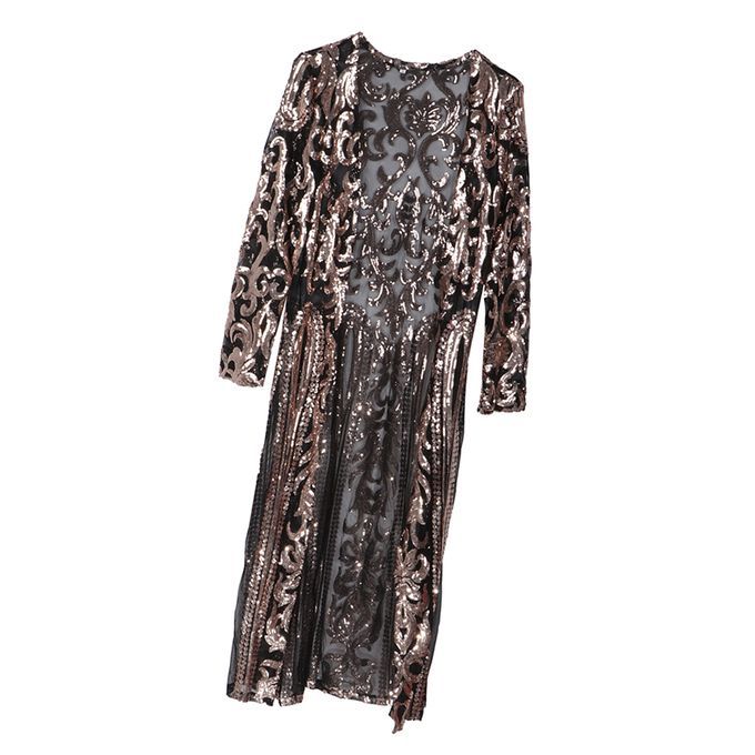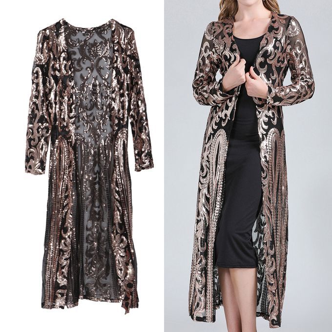 Buy Sequins Long Cardigan Open Front Vintage Outerwear Long Sleeve Black in Nigeria