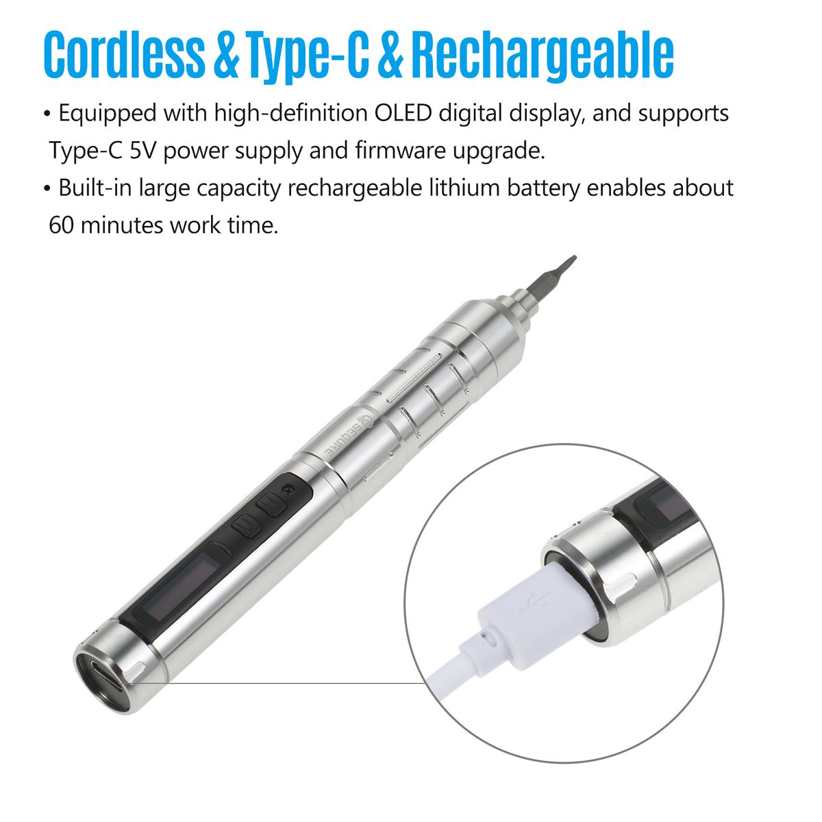 Cordless Design -- Equipped with high-definition OLED digital display, and supports Type-C 5V power supply and firmware upgrade. Built-in large capacity rechargeable lithium battery enables about 60 minutes work time.