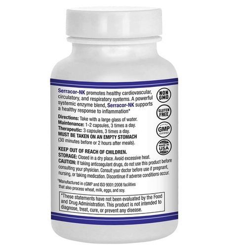 - ADVANCED SYSTEMIC ENZYME FORMULA: Serracor-NK is a powerful blend of enteric-coated Serrapeptase and Nattokinase, systemic enzymes studied for their fibrinolytic properties, with antioxidant herbs, CoEnzyme Q10 and magnesium. Serracor-NK supports a healthy circulatory system and normal fibrin metabolism.*