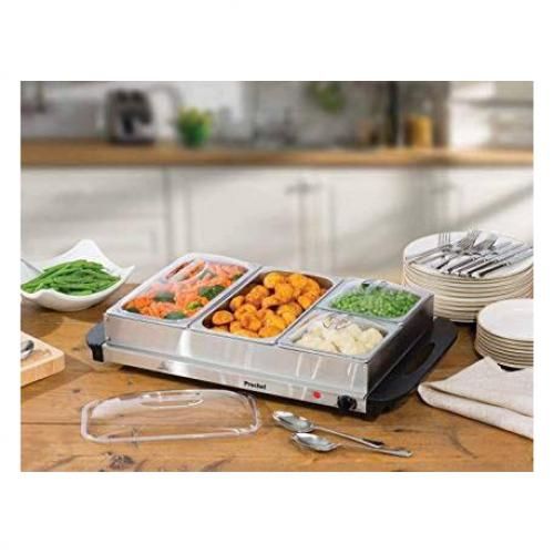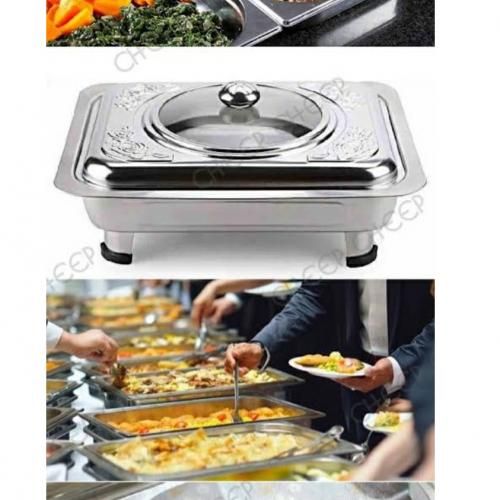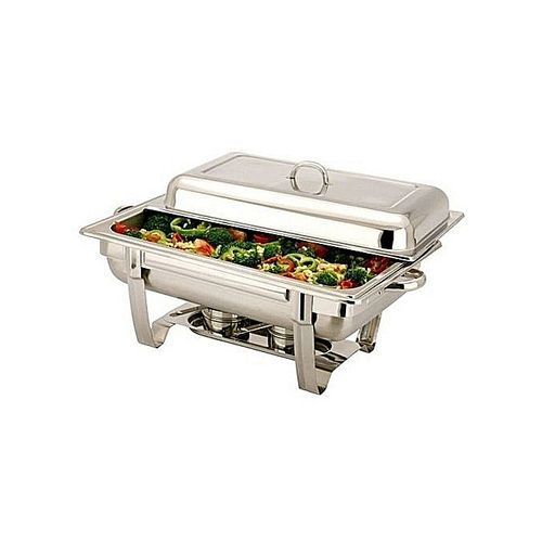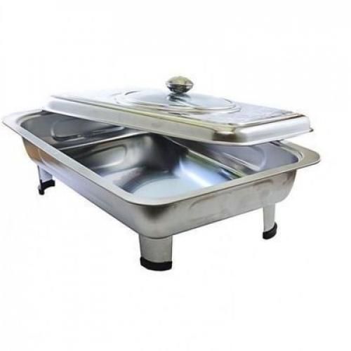 Made of durable stainless steel that never needs polishing, this chaffing dish is durable and long lasting. The water and food pans are dishwasher safe, and the outer body can be hand-wiped for easy cleaning. The dish cover conveniently clips onto the frame when food is ready to be served.