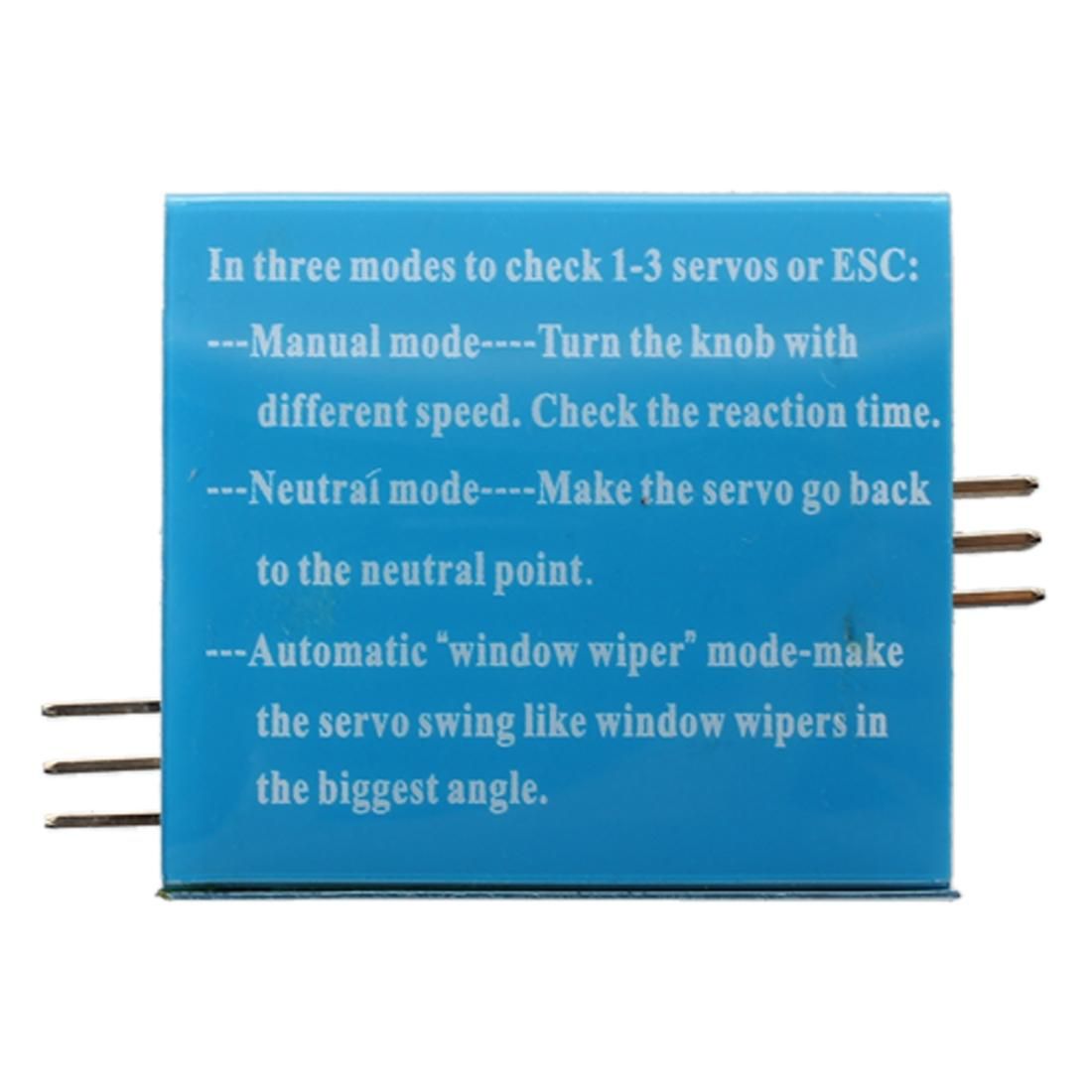 There are 3 modes to check servos or ESC Manual mode turn the knob with different speed check the reaction time Neutral mode make the servo go back to the neutral point