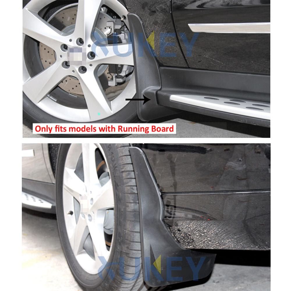XUKEYDeluxe Molded Sp Guards provide excellent lower body protection and accent the vehicle styling. Made of TPO Plastic to be rigid and able. They are molded to the contours of the vehicle for a custom fitThese tough-wearing guards seamlely blend with the vehicles styling and minimise the risk of dirt, road debris and chips flying up from the Front and rear tyres.Provide additional protection whilst enhancing the sporty exterior of your vehicleBrand:XUKEYFitment:For Mercedes Benz (W166) M-Cla / ML2012-2015 With Running boardsMAKE SURE YOUR CAR BUMPER IS THE SAME AS THE PICTURE SHOWS.