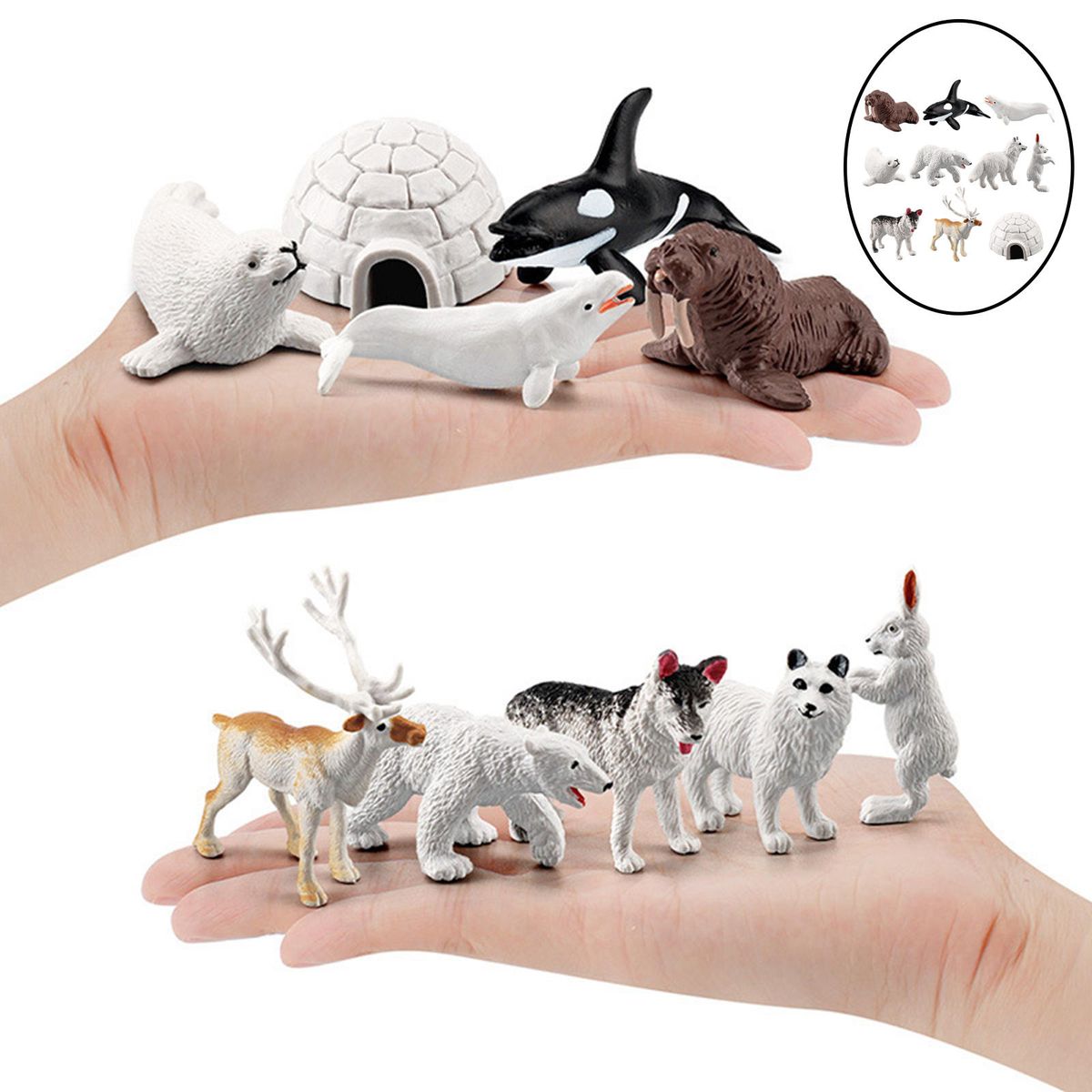 Made of environmental resin material, realistic , lifelike arctic winter animals life model.Excellent details and craftsmanship, colors are fairly vibrant, make you feel the charm of animals.A good item for home decor, table ornament, kids story telling props, showcase display toy, or gift, also for collection. A true reflection of nature on a smaller scale giving educational play value. the lifelike shape is a good toy for children to understand animals.The animal figurine set is perfect for collectors, lovers, teachers and kids, display it on the shelf, use it in the classroom, or just enjoy playing it.