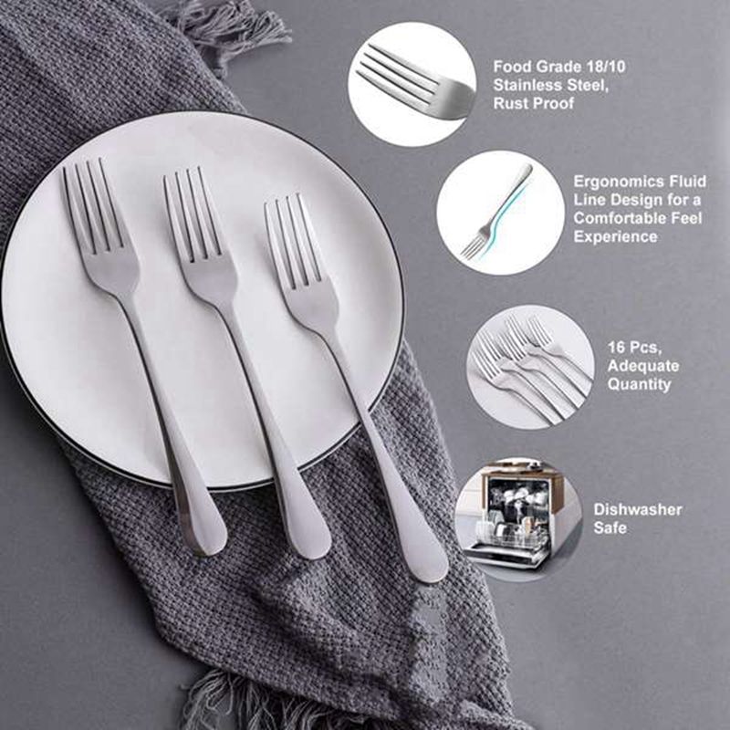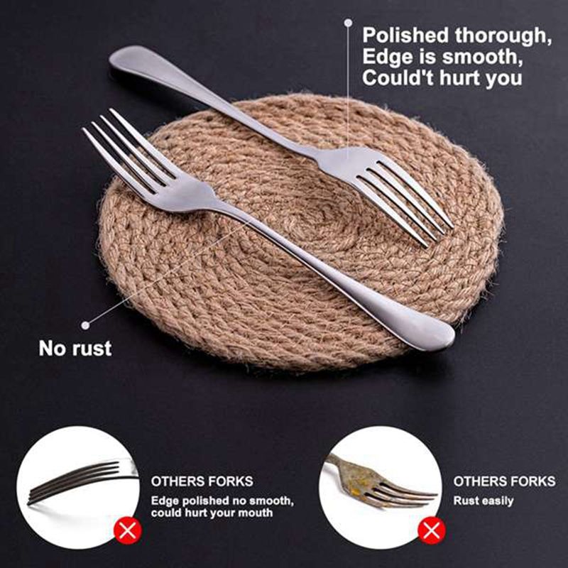 [COMFORTABLE AND HEALTHY]: These dinner forks are carefully weighted to be comfortable to hold no matter what you're eating without bending. Each of our stainless steel silverware set no metal aftertaste,and made to last the test of time to provide you with years of use.