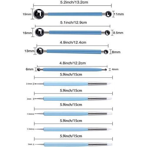 9 x Sculpting Pen - Total 13 different ball ends.Diameters: 0.8/1/1.5/2/2.5/4/6/8/10/11/13/16/18 mm for mandala rock painting or art on canvas.