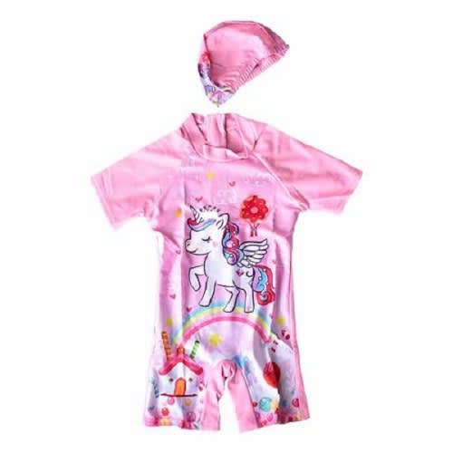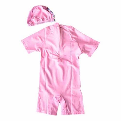 This is full body cover suit for swimming.It has long sleeve with round neck .It is decorated with Frozen characters that children love.It gives full protection while swimming.It has a short zip at the back .The cap is detachable.The sizes are L,XL,XXL,XXXL AND 4XL.