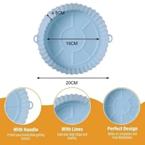 These non-stick disposable air fryers have a round bowl design with 4.5 cm raised edges to protect the sides of the fryer and prevent food from sticking to it.