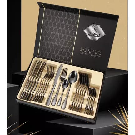 Buy Set Of 24pcs Black Stainless Cutlery - Spoon + Fork And Knife in Nigeria