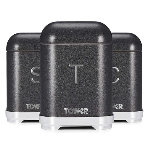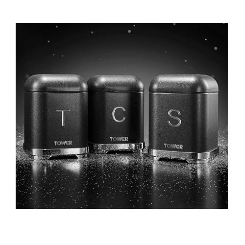 Buy Set Of 3 Canisters - Glitz Range - Tea Coffee Sugar - 1.5L - Black in Nigeria