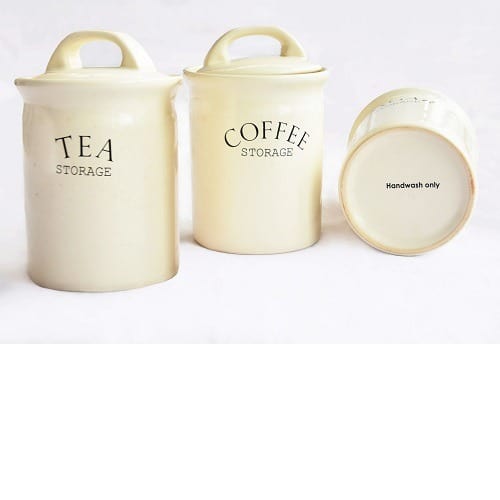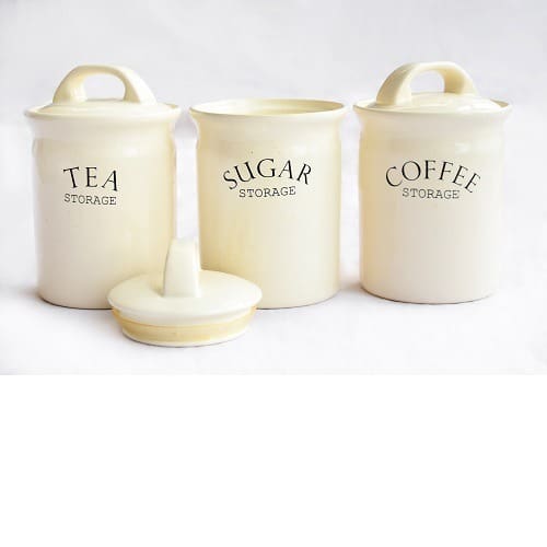 Buy Set Of 3 Tea Coffee Sugar Ceramic Canisters-beige in Nigeria