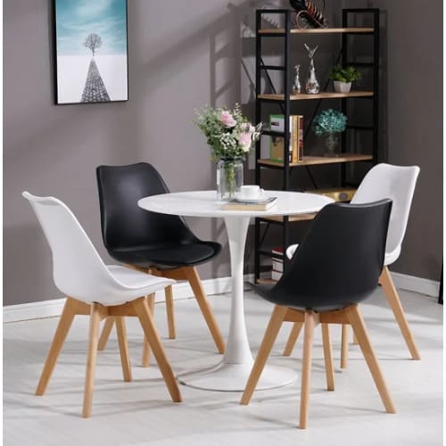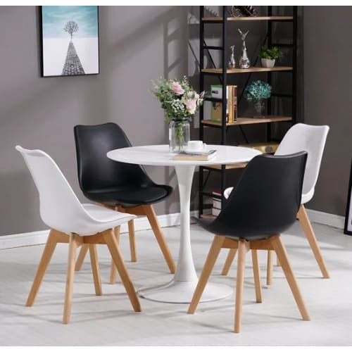 The table and dining chairs set is the perfect homeware accessory that can be used at your dining table or your Kitchen. The dining chair comfortably seats one person with a modern design and features a clean sleek round edge finish, the table blends in and yet ever so elegantly and stylish to fit in any interior design.