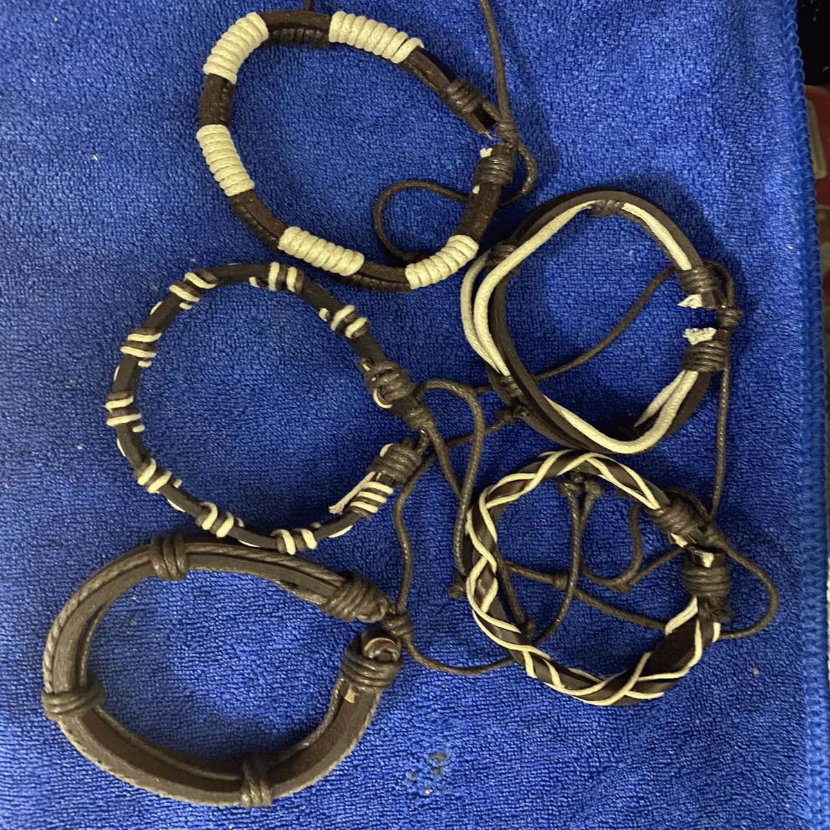 1:1 winding 1 rope2: 1 braided rope3: Combination hand-woven 14: 1 piece of PU leather5: 1 tie rope