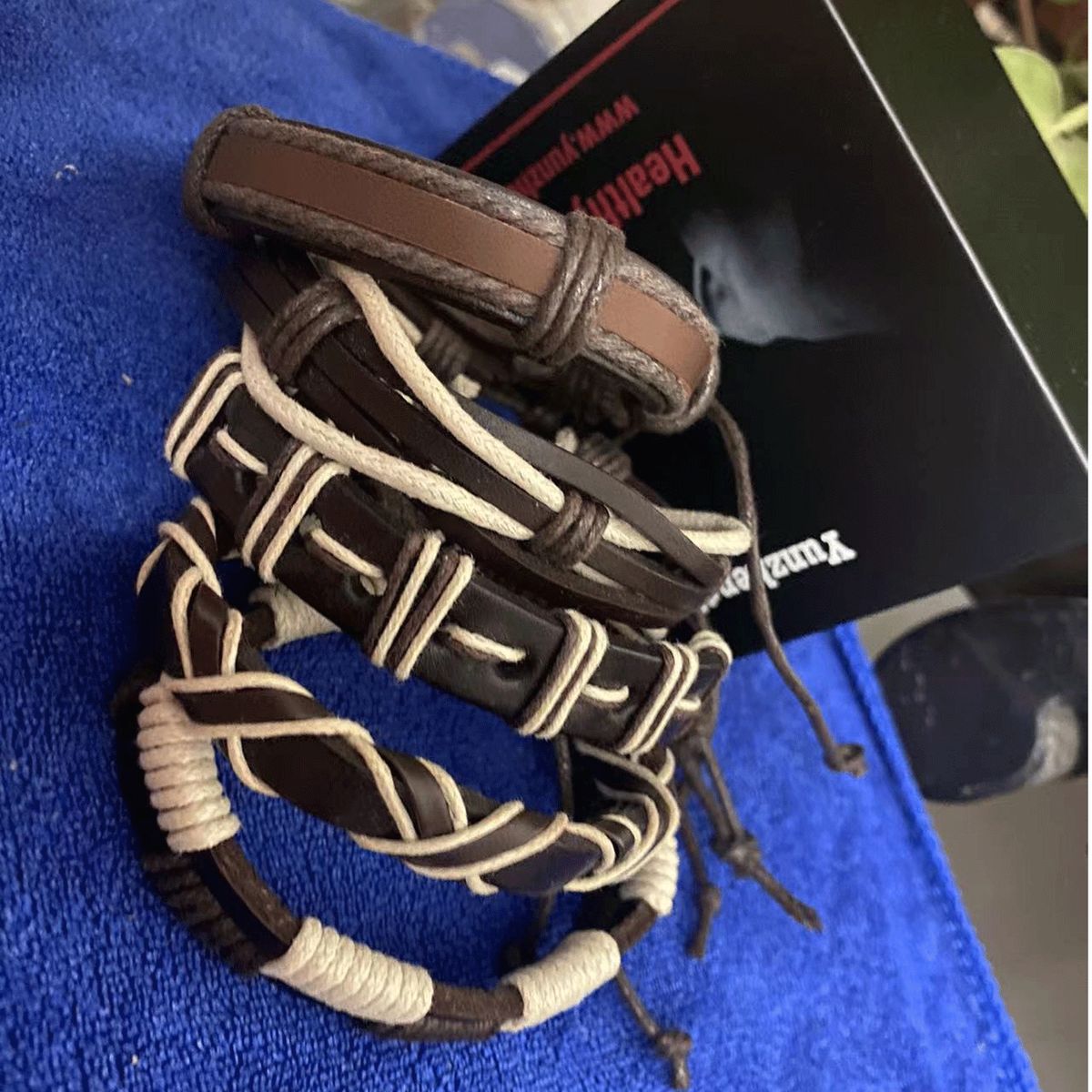 Name: PU leather braceletWeight: 26 gramsMaterial: PU+wax ropeStyle: Retro Chinese
