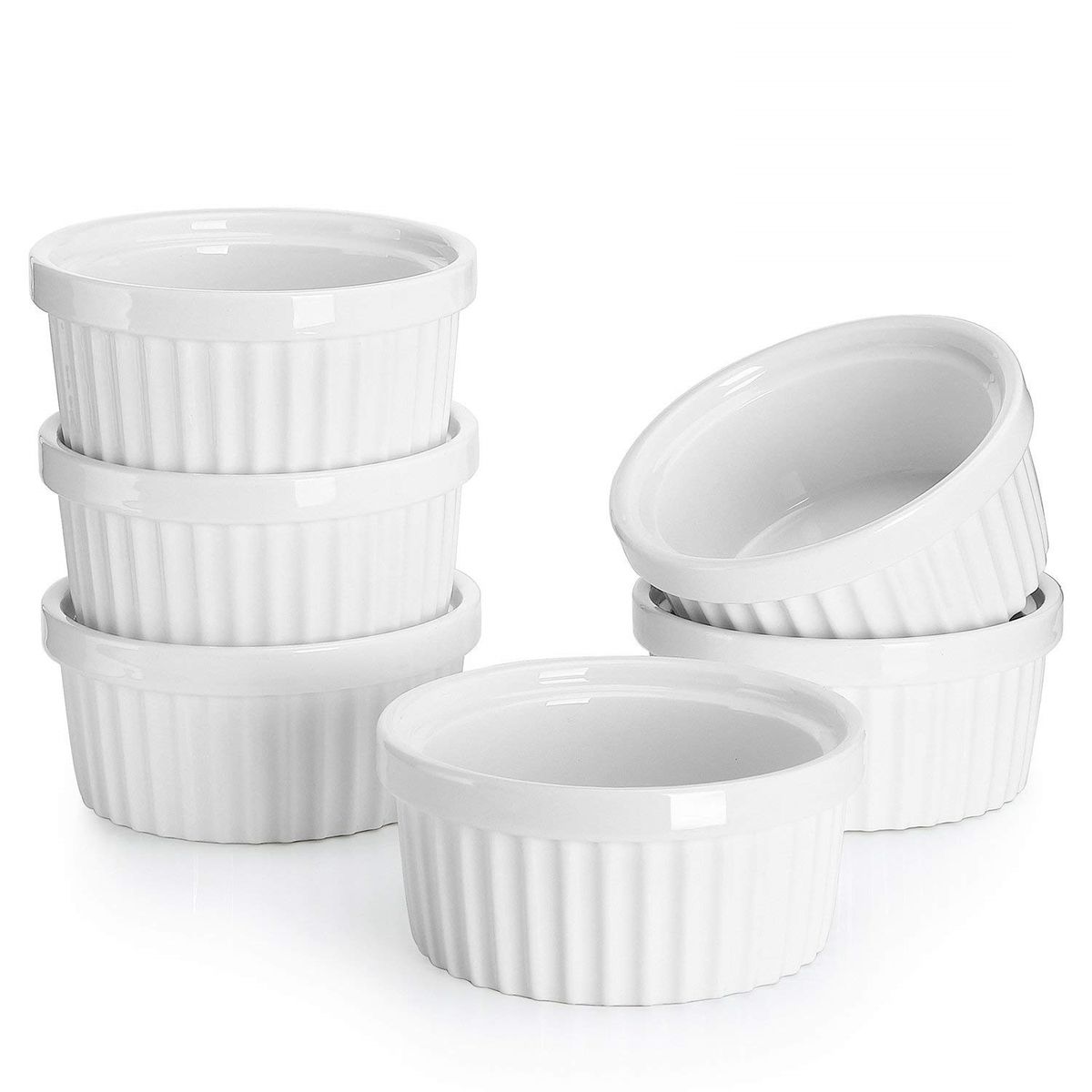 Set of 6 Fine White Porcelain Ramekins Souffle Cup 6 Szies Baking Creme Brulee Pudding Custard Cups
