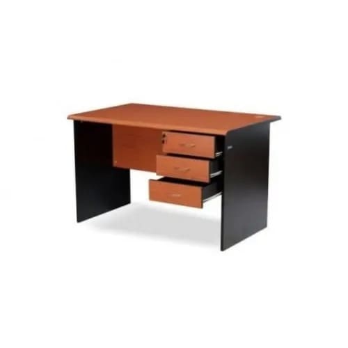 An office table with 3 drawers and a sturdy design.