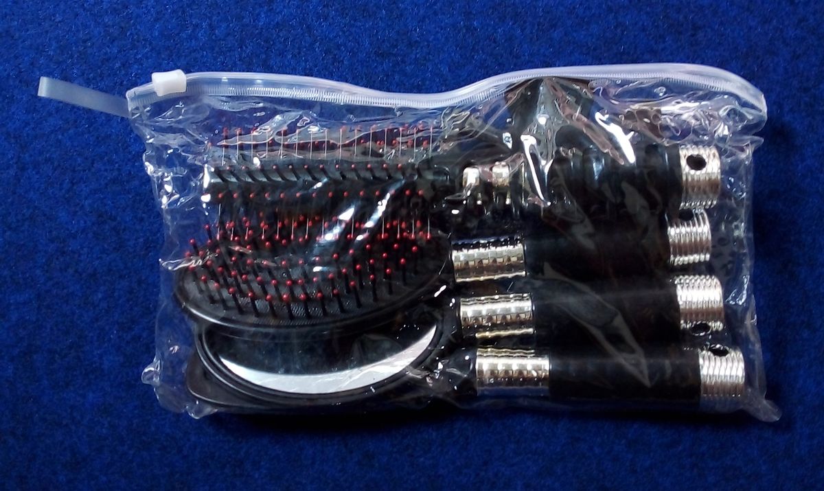 Set of hair styling brush/comb with mirror and hair holder, black colour 1 set.