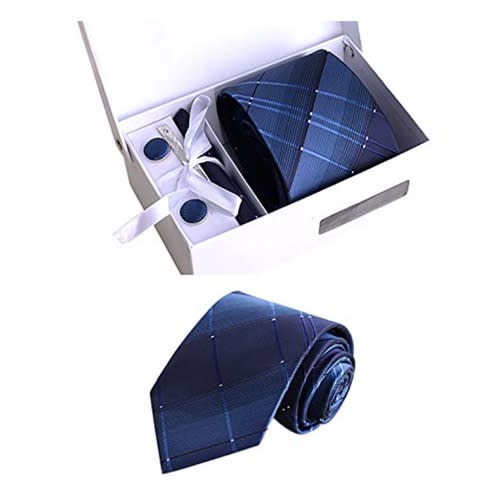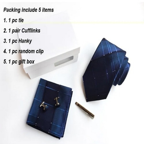 This batch of ties is made of high-density polyester silk fabrics, three-dimensional tailoring, machine stitching, high density, exquisite workmanship, neckties are not easy to loose threads and deform, and can be purchased with confidence. A variety of colors, please check our other products.Set includes tie, square scarf, cufflinks, white gift boxTie size: 146x7.5x3.5cmSquare scarf size: 25x25cmCufflink size: 1.5cm