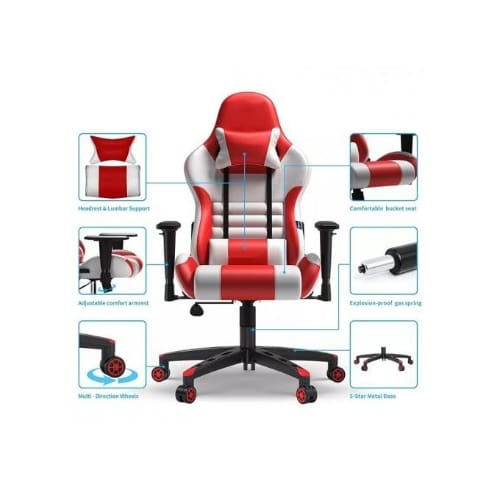 Buy Set Of Office Gaming Chair- Red And White And Gaming Desk- Black in Nigeria