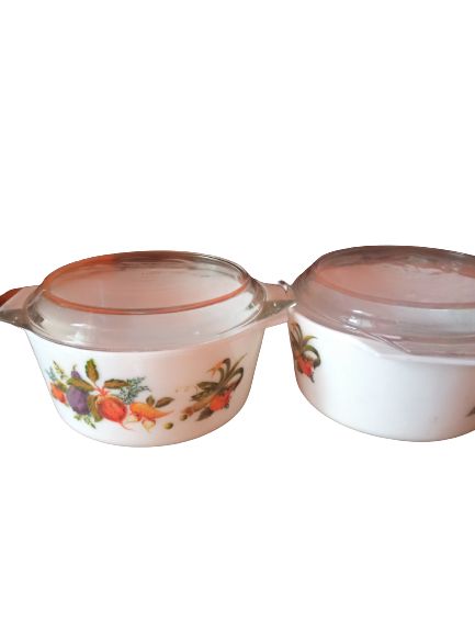 Amazing original vintage JAJ Pyrex casserole oven dish. Wonderfully kitsch pink and blue 'Country Rose' pattern produced from 1970 Made in Sunderland, England. Great vintage dish to add a little vintage charm from oven to dinner table! More casserole dishes available (see last photo) and other tableware. Happy to combine shipping where possible. Please view photos as a visual description of item condition. Superb dishes in very good used vintage condition. Slight wear commensurate with age Perfect for a chef baker for cooking, baking, and serving. Food storage.Add this vintage Jaj Casserole dish in the popular Brairwood pattern to your collection. Very beautiful collectors piece with rich coloured and detailed pattern around the dish.