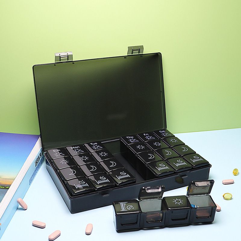 - [Large Capacity Pill Box]The weekly pill box organizer has 4 separate daily pills organizer for a week, total 28 large compartments. Each slot can store at least 20 small tablets. Plenty of room for all of your meds and keeping yourself organized.
