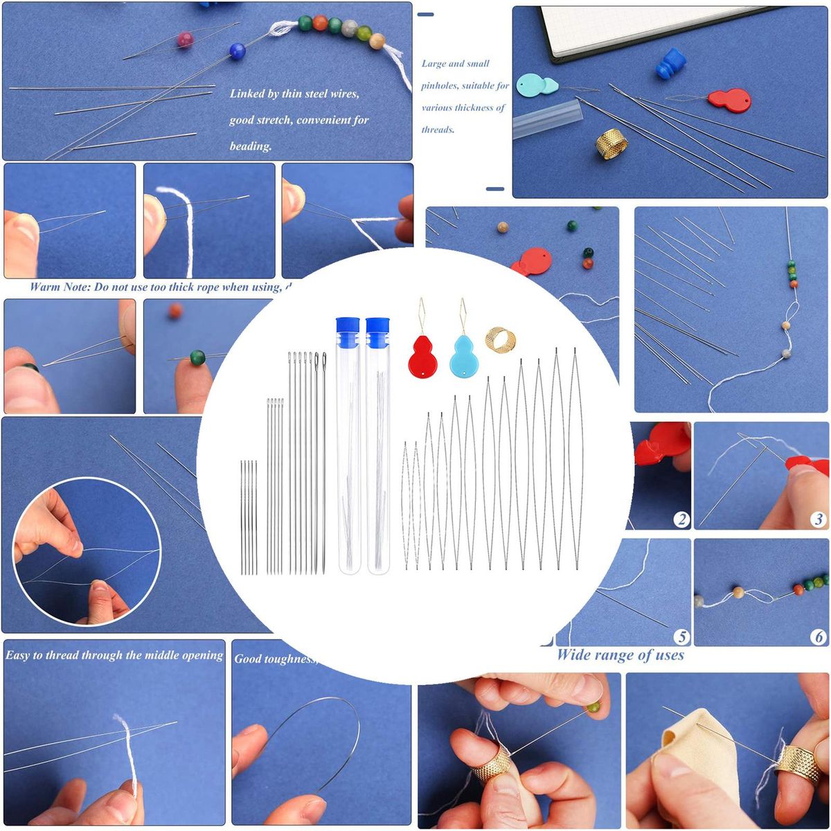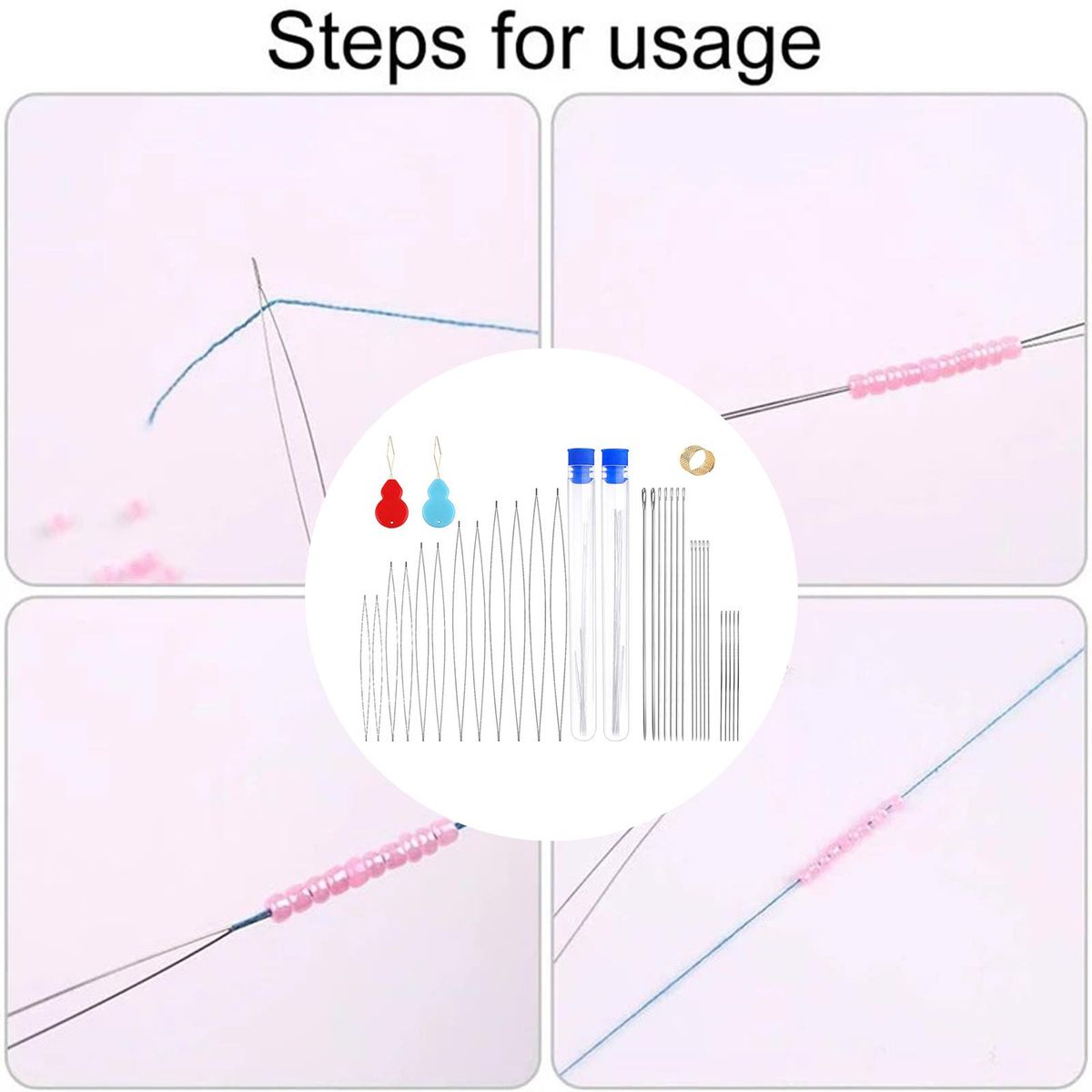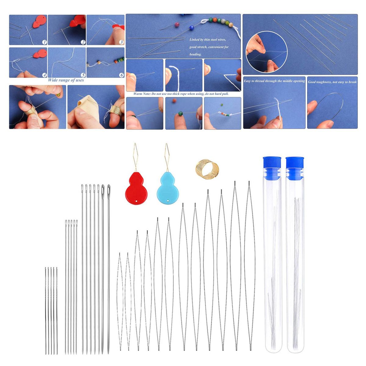Jewelry Making Pins;Big Stainless Steel Beading ;Beading for Beads Threading String Cord;Big Eye Bead Seed Set;Pin Cushion and Thimble for Jewellery Making;Embroidery Beading Thread Set